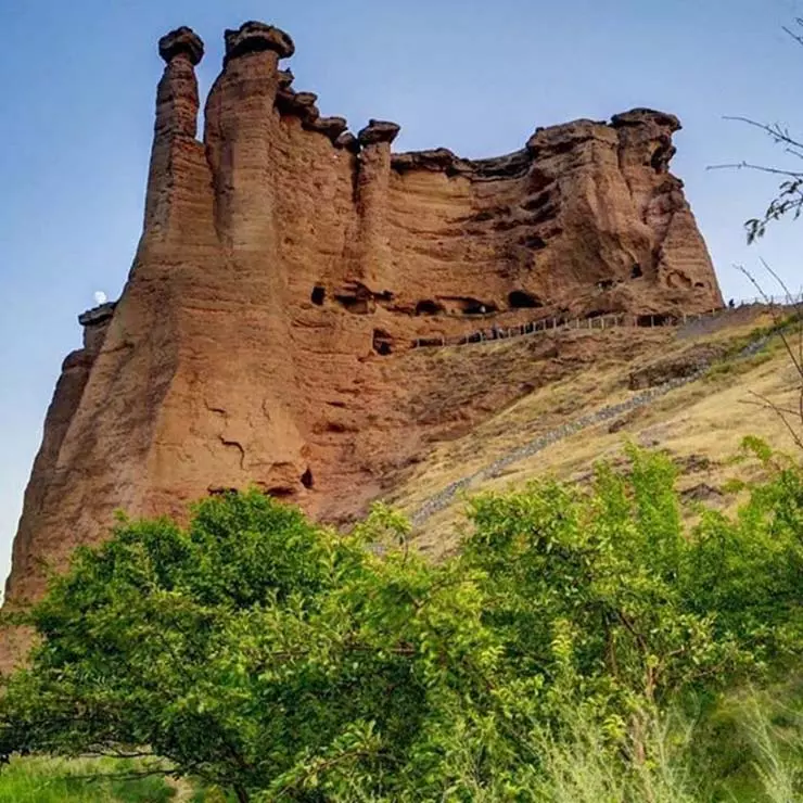 Other attractions of this city include the village of Shilander, Mil Khoyin, Sorkh-e-Ab Protected Area, Arana Waterfall, Haj Seyyed Mohammad Bridge, Kharmaneh Cave, Haji Kandi Cave, Dash-e-Kasan or Dragon Temple, Behestan Castle and the Jinn Chimney.
