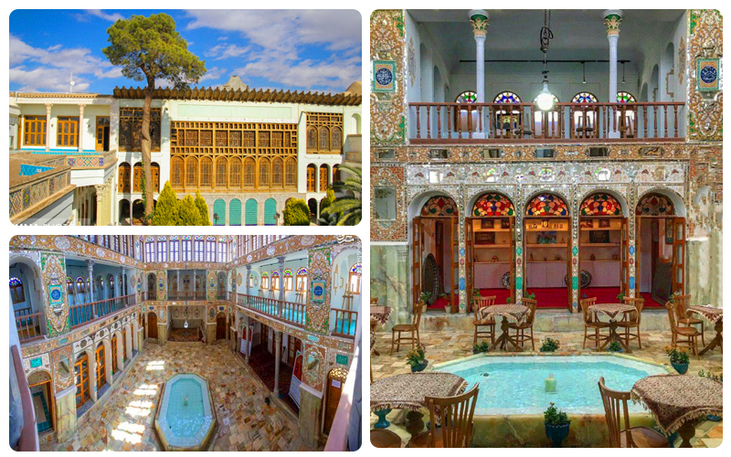 • - تنوع ششگانه درسر ستون ‏های دو طرف حیاط با فرم ‏های فرنگی و ایرانی.